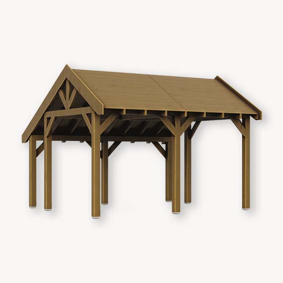 Deze overkapping bestaat uit groen geïmpregneerd Douglas hout. Daardoor heeft de overkapping een karakteristieke, robuuste uitstraling. Door de behandeling is het hout beter bestand tegen verwering, maar het hout zal na verloop van tijd alsnog wat veranderen naar een lichtgrijze kleur. Hierdoor wordt het landelijke karakter extra versterkt!